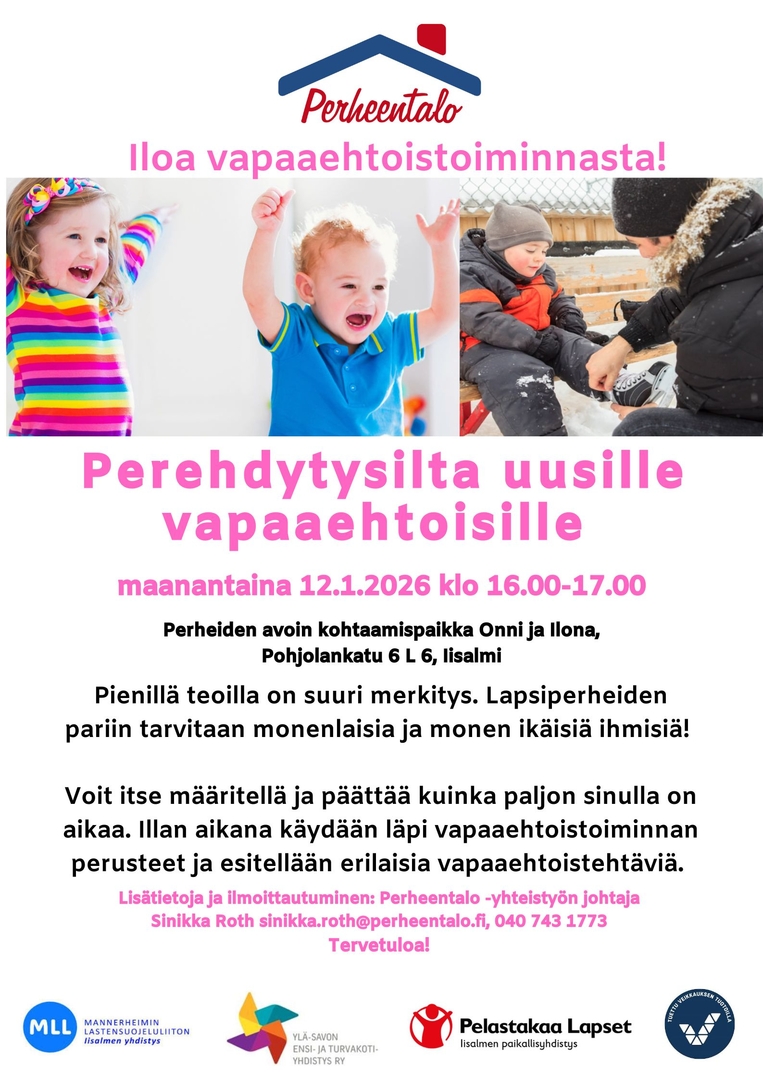 MLL:n Iisalmen yhdistys ry:n avoimessa kohtaamispaikassa Perheentalo Onni ja Ilonan perhekahvilassa vapaaehtoisen tehtävänä on toivottaa tulijat tervetulleiksi ja kohdata perheitä ja lapsia yhdessä työntekijöiden kanssa. Perhekahvilassa halutessaan myös leipoa, leikkiä, lukea tai tarjota ylimääräisen sylin.