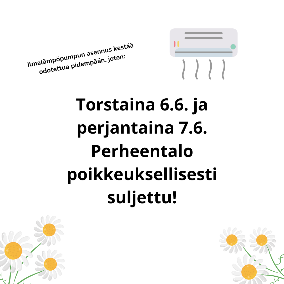 Perheentalo suljettu 6.6.-7.6!! Huom!