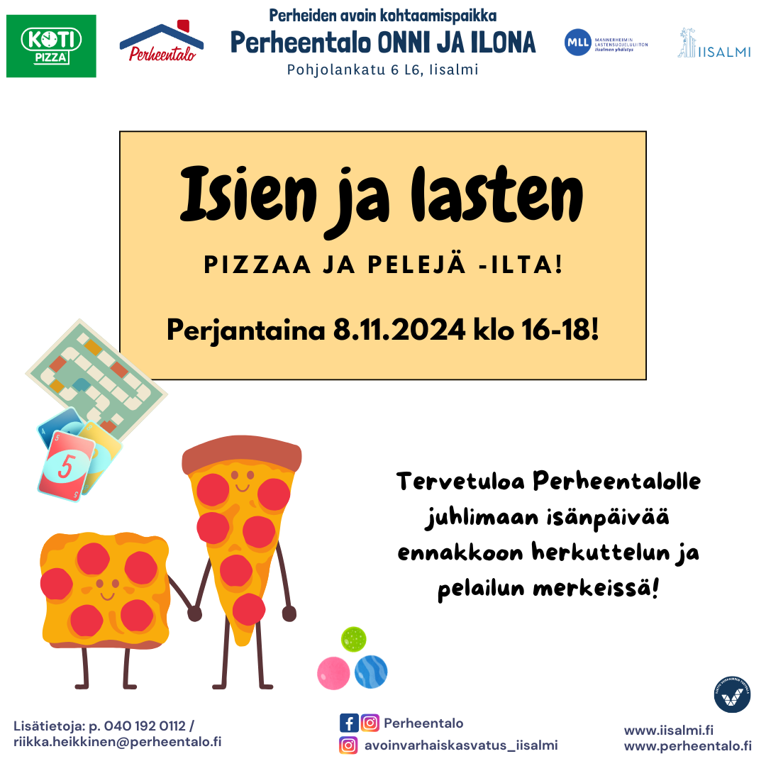 Isien ja lasten pizzaa ja pelejä -ilta perjantaina 8.11.