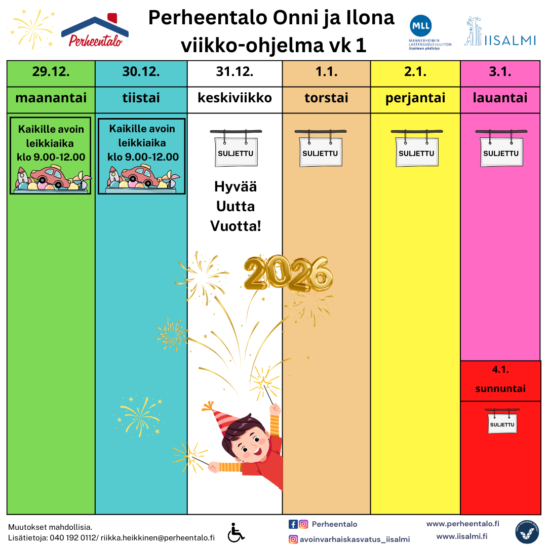 Viikolla 1 Perheentalo avoinna ma ja ti klo 9-12.
