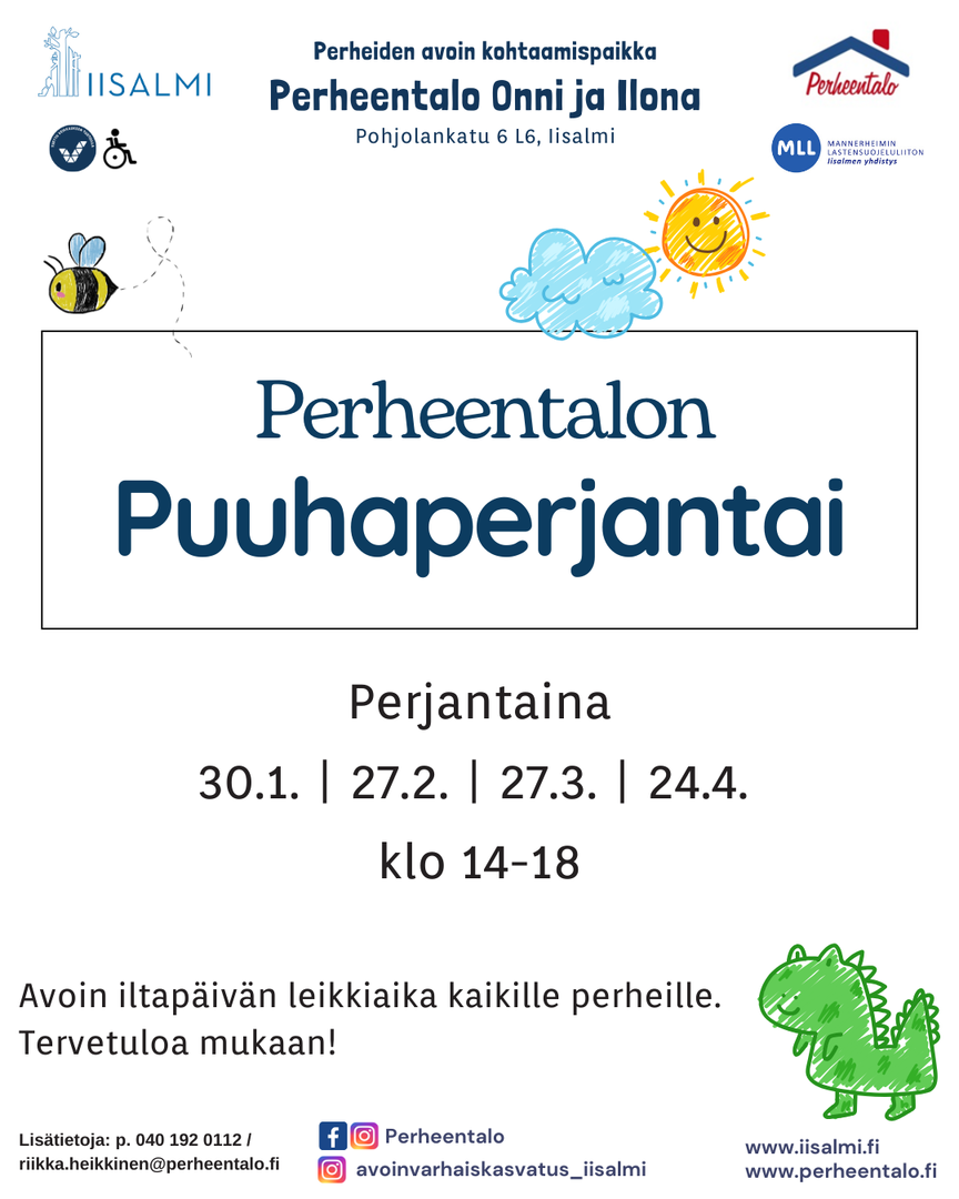 Perheentalon Puuhaperjantait ovat täällä! Perheiden toiveesta olemme lisänneet aukioloaikaa muutamaan iltapäivään.