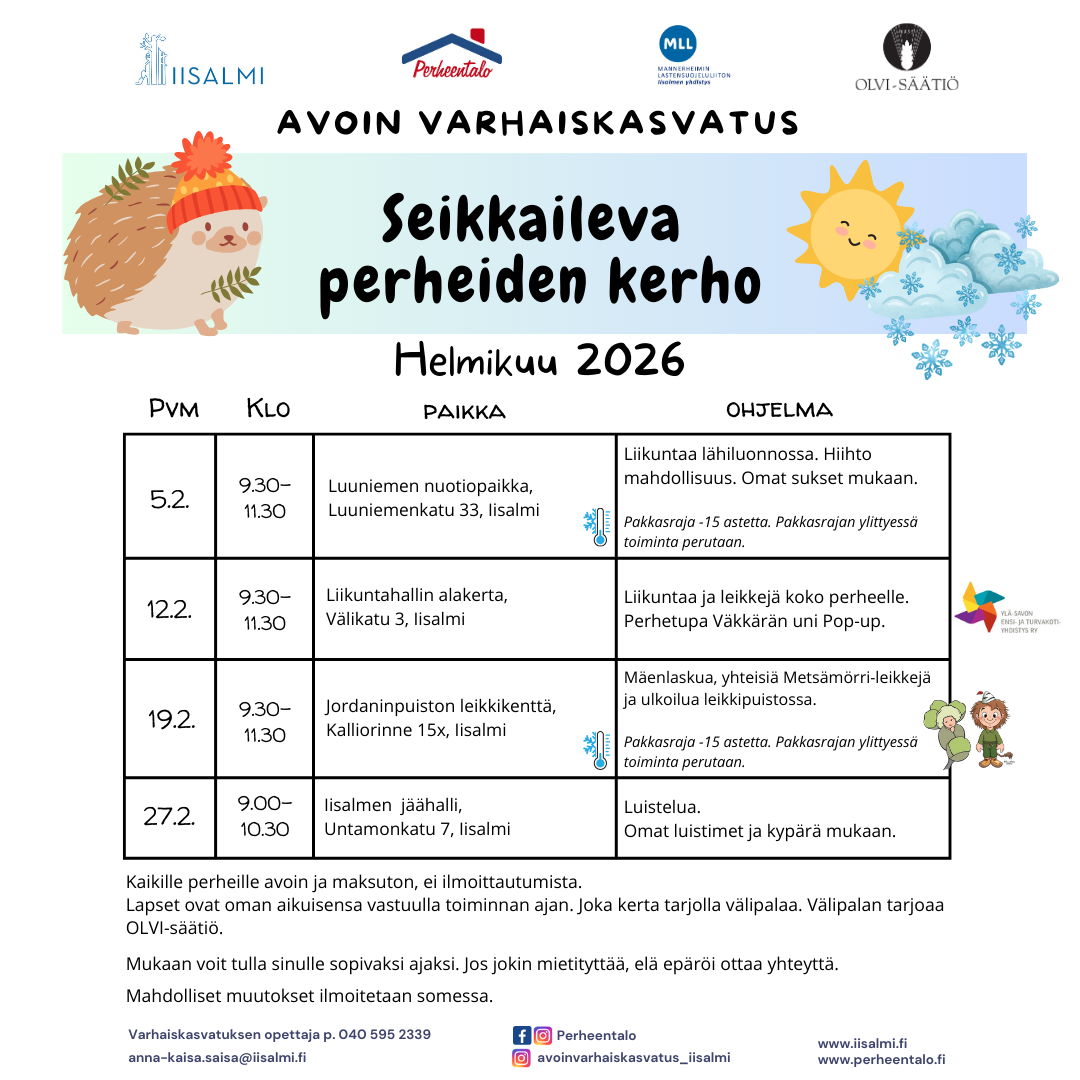 Seikkailevan perheiden kerhon helmikuun ohjelma.